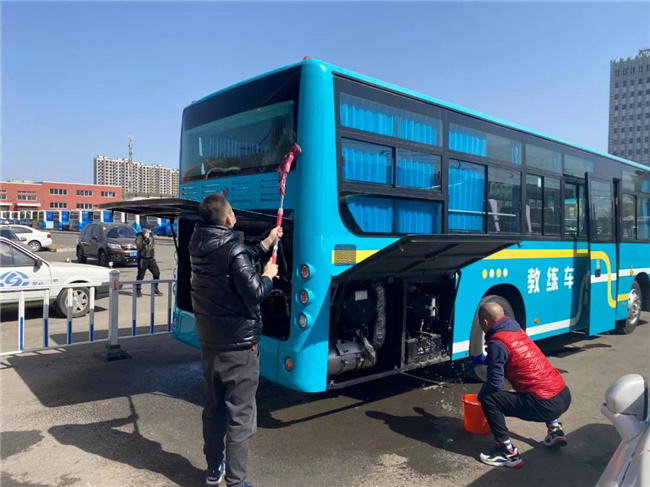 在學(xué)雷鋒活動(dòng)中,技校組織職工擦拭教練車,更加優(yōu)化了學(xué)員的練車環(huán)境。