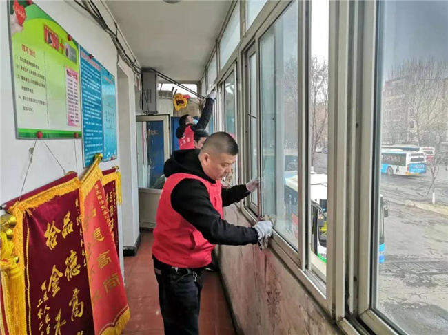 近日,132路隊(duì)長(zhǎng)張鐵豐帶領(lǐng)駕駛員們對(duì)工貿(mào)學(xué)校終點(diǎn)站的候車?yán)冗M(jìn)行衛(wèi)生打掃。大家分工合作,對(duì)候車?yán)鹊姆鍪帧⒄九?、地面進(jìn)行清潔打掃,同時(shí)為問路的乘客提供幫助。在隊(duì)長(zhǎng)和駕駛員共同努力下,候車?yán)刃l(wèi)生整潔一新。