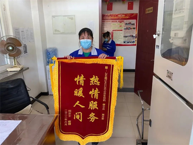 第二天,乘客劉女士專程來(lái)到260車隊(duì),將一面寫(xiě)有“熱情服務(wù) 情暖人間”字樣的錦旗交到了車隊(duì)并說(shuō)道:“非常感謝車隊(duì)培養(yǎng)了這么優(yōu)秀的駕駛員,因節(jié)日期間急著補(bǔ)一批貨,又趕上家里缺人手,我才一個(gè)人前往五愛(ài)市場(chǎng)。本來(lái)還擔(dān)心駕駛員不會(huì)讓我上車,或者嫌棄我耽誤時(shí)間,沒(méi)想到遇到了兩位熱心腸的駕駛員,他們耐心細(xì)致的幫助我解決了困難,讓我倍感溫暖。為表感激之情,我特意趕制了一面錦旗了表寸心,謝謝你們!”
