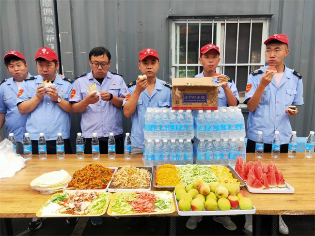 為了保障駕駛員在高溫天氣下,以飽滿的工作狀態(tài)更好的為廣大乘客服好務,車隊密切關注駕駛員的精神狀態(tài)和身體健康情況,做好駕駛員生理心理健康監(jiān)測工作,加強對駕駛員心理健康的培訓和疏導工作。同時,為了調動廣大駕駛員工作積極性,以更加飽滿的精神狀態(tài)為乘客提供文明規(guī)范的服務,車隊從關心職工出發(fā),持續(xù)為職工“送清涼 ”、為職工提供礦泉水,西瓜、雪糕,鮮桃做好防暑降溫工作。值得一提的是,三伏第一天,211.222車隊還很應景的為職工提供了“烙餅攤雞蛋”和豬頭肉、香腸、魚香肉絲、豆芽炒粉,卷菜等菜品,提高餐品質量提升職工用餐滿意度。