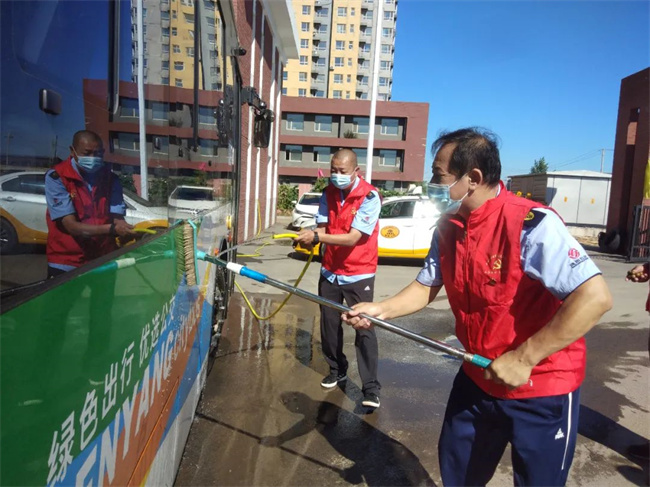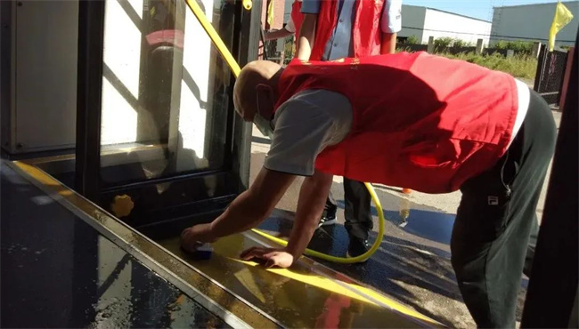 通運公司志愿服務隊來到239路車隊,細化防控措施,在公交停車場對乘客候車區(qū)進行不間斷消毒,同時協(xié)助公交駕駛員嚴格實行公交車返場后的集中消毒及車輛通風、清潔等工作,特別是對車廂內座椅、扶手等乘客易接觸的部位進行深度消殺,做到不留死角、不留盲區(qū),全方位保障乘客出行安全。