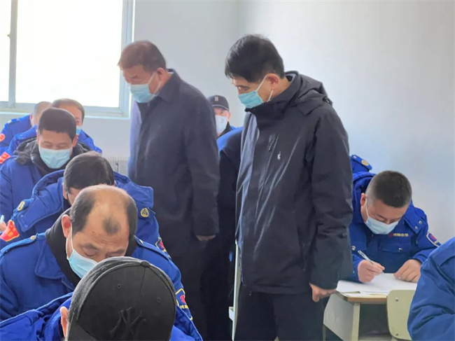 市城建交通農(nóng)林工會(huì)主席劉宗純在客運(yùn)集團(tuán)黨委書記董事長孟令軍的陪同下視察考場。