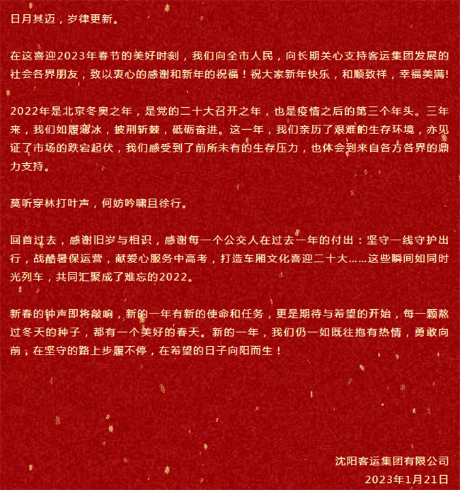 沈陽客運集團新春賀詞
