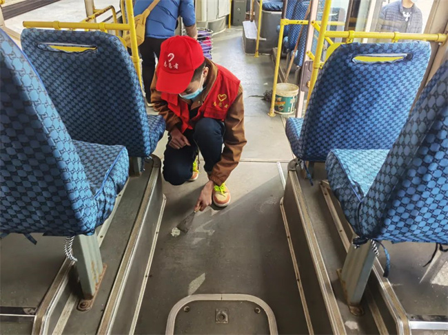 303路車隊(duì)組織職工對運(yùn)營車輛的衛(wèi)生、辦公區(qū)域、休息室進(jìn)行了大清掃:
