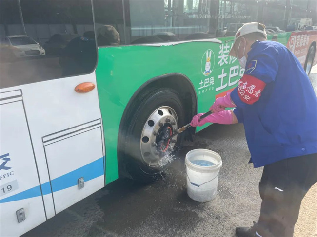 各車隊隊長帶領(lǐng)駕駛員擦洗運營車輛,打掃車內(nèi)衛(wèi)生,駕駛員也自發(fā)加入其中,全力為乘客提供整潔舒適的乘車環(huán)境。