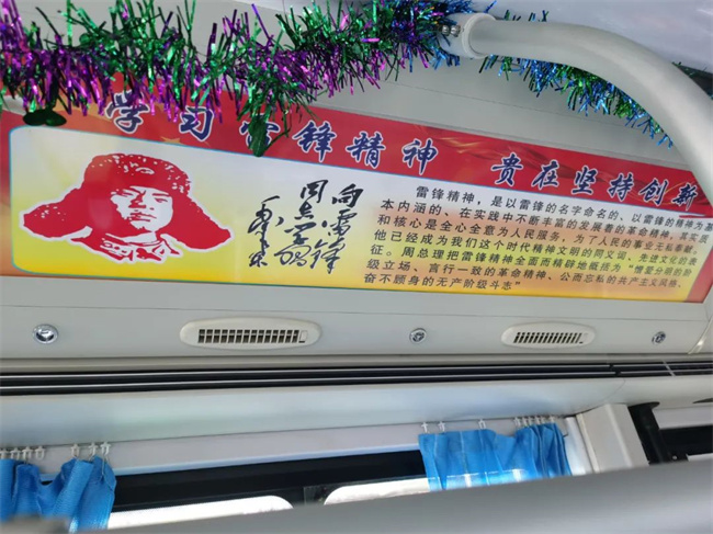 209路車隊充分利用車廂展板,在2098號單車上精心打造學(xué)習(xí)雷鋒主題文化車廂。