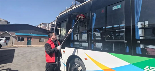 活動中,志愿者們齊心協(xié)力、分工協(xié)作,從車廂內(nèi)的每一排座椅、每一扇車窗、每一個扶手,到車身外的輪胎、擋風(fēng)玻璃、車身,志愿者們都悉心清理,用心擦拭。盡管當(dāng)天天氣仍有些涼意,但勞動后的大家心里卻暖意洋洋,大家紛紛表示能為乘客提供一個干凈衛(wèi)生的乘車環(huán)境,是我們公交人應(yīng)盡的義務(wù)。