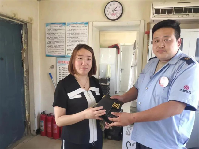一小時后,一位姓王的女士趕到車隊,詢問是否有人拾到一個編織袋,核實無誤后,吳喆將失物交還給王女士。