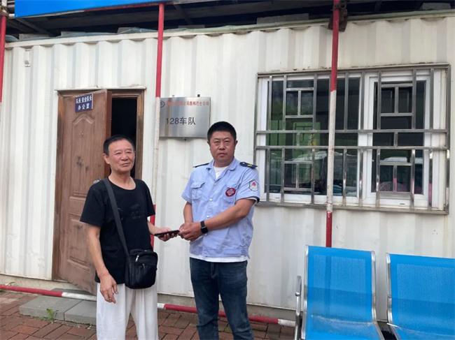 6月24日,乘客程先生手持錦旗再次來到128路車隊,并當(dāng)面向駕駛員閆曉石表達了感謝。
