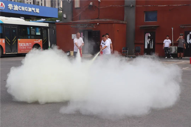 培訓結(jié)束后,大家來到通運公司院內(nèi),由李教官為大家進行消防、反恐方面的指導,并模擬公交車輛突發(fā)火災事故時,駕駛員應如何采取緊急停車、開啟車門、切斷電源、疏散乘客到安全位置等應急措施,以及如何正確使用滅火器進行滅火的實操演練。