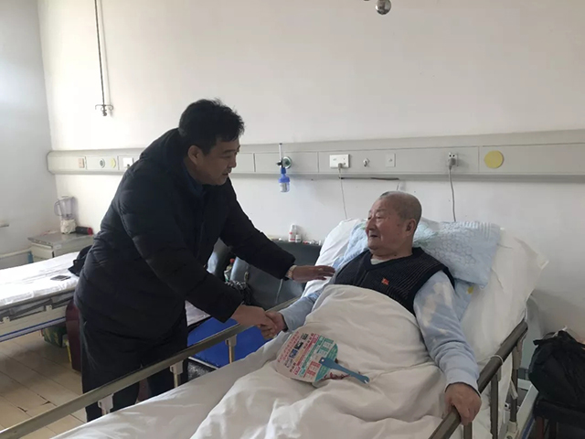 劉文清同志首先走訪慰問了集團(tuán)公司唯一一名百歲離休干部、老黨員呂喜元。文清書記關(guān)切地詢問老人的身體、生活情況。并為老人送上了慰問品和慰問金。看到百歲老人呂喜元精神矍鑠,生活幸福,劉文清同志十分高興并連連夸贊,他說:“家有一老,如有一寶,老壽星是家庭和睦的基石,陪伴老人才是最大的孝道”。此次走訪慰問活動(dòng)讓老人十分感動(dòng),連聲致謝,屋內(nèi)呈現(xiàn)出一片祥和、歡樂的氣氛。